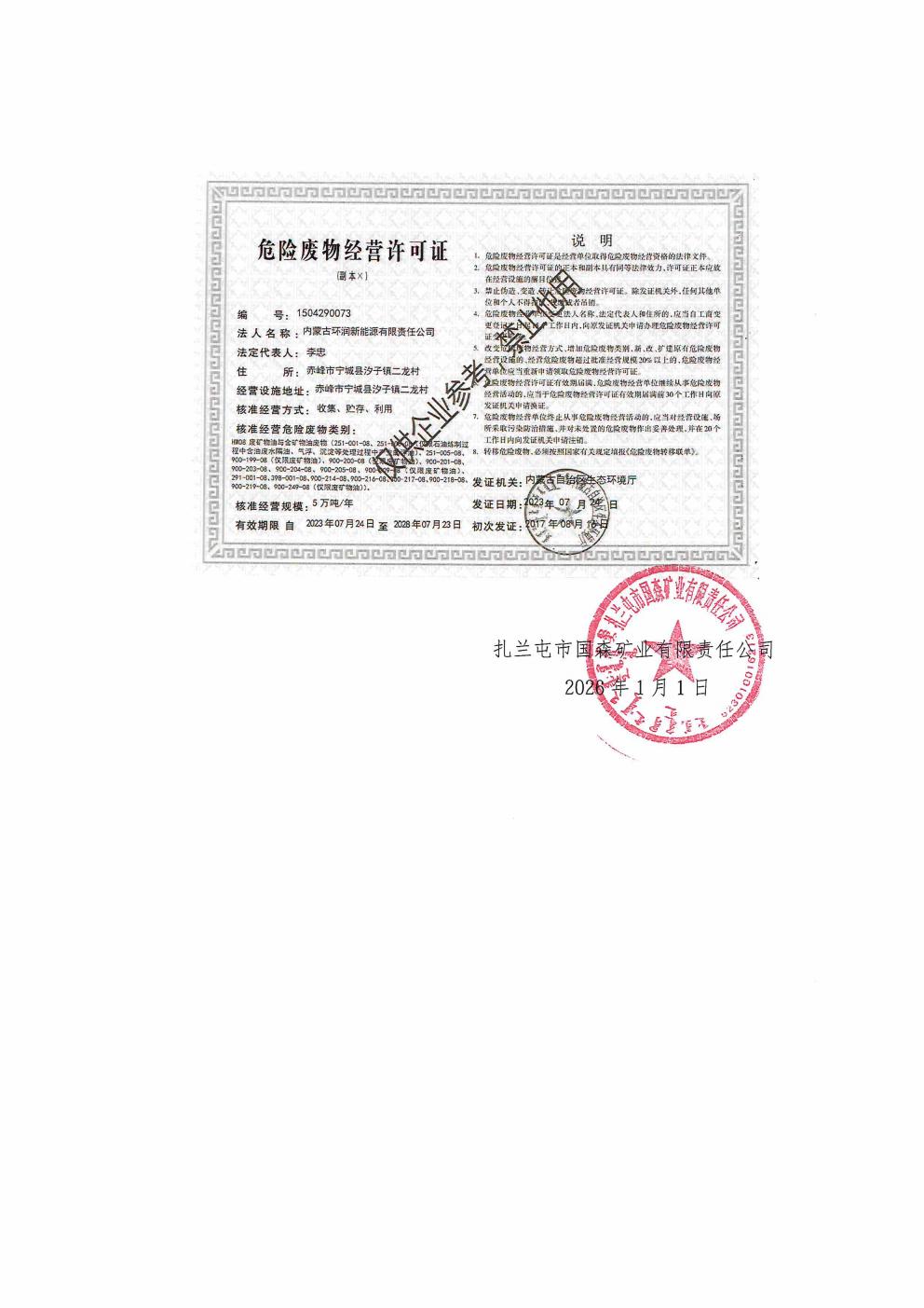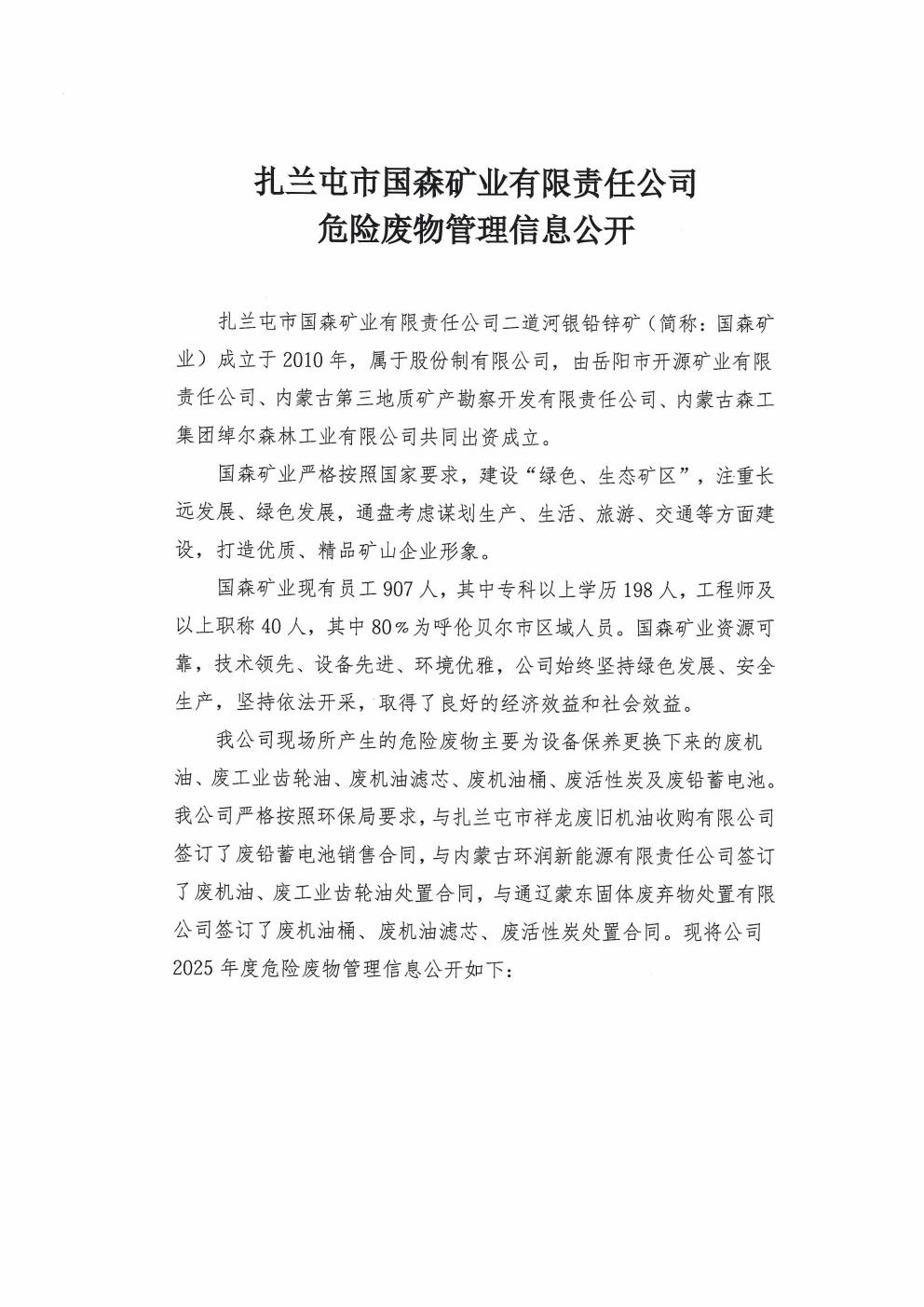 扎兰屯市国森矿业有限责任公司 危险废物管理信息公开